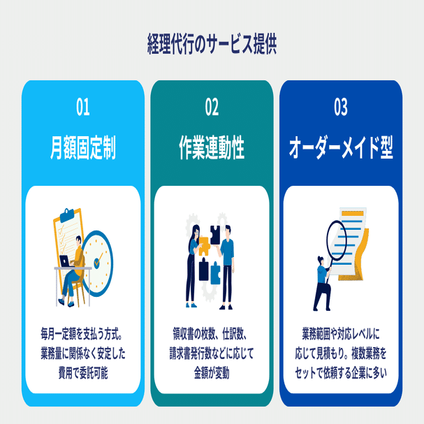 経理代行には、主に以下のような3つの料金体系があります。